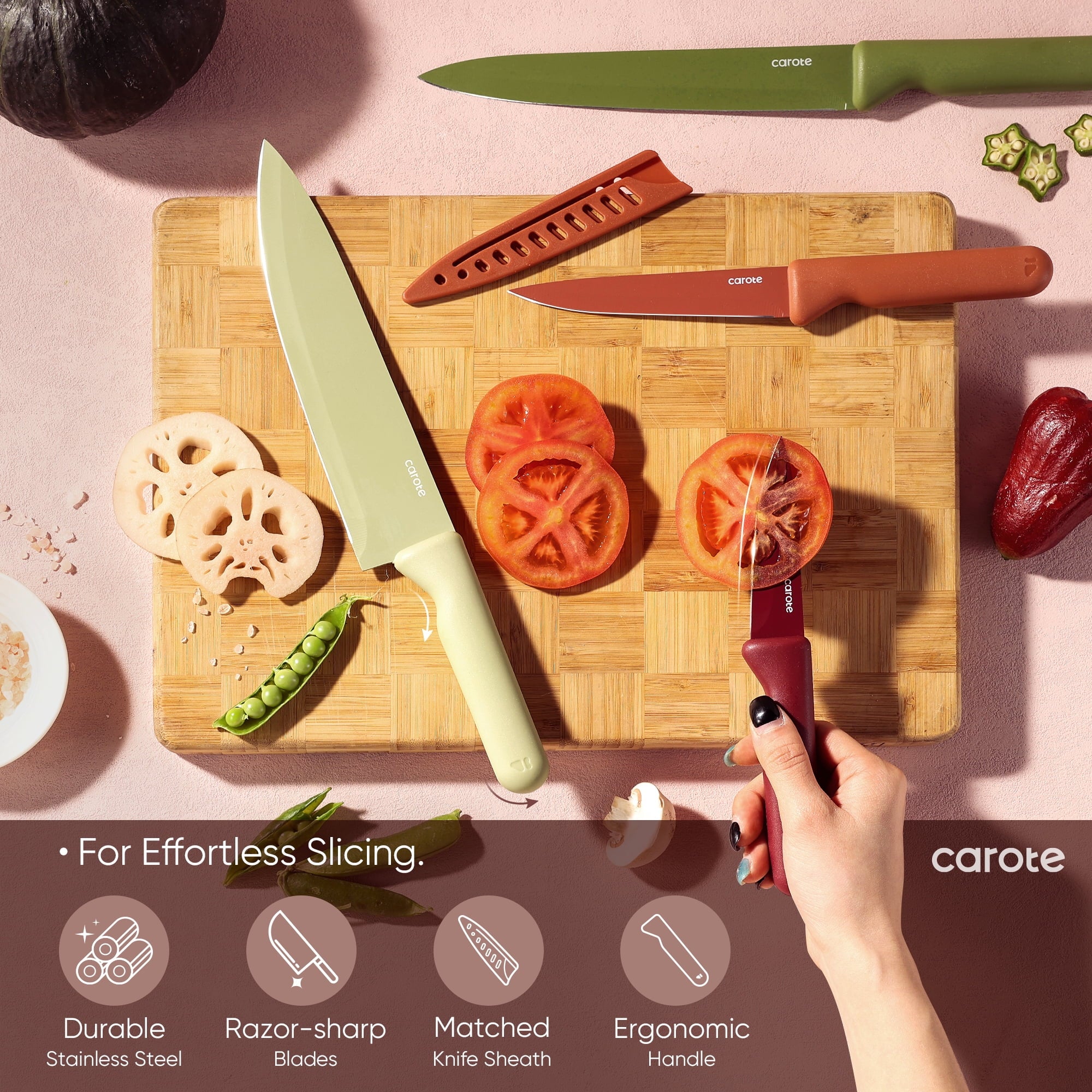 Stylish & Functional Color Design: The soft, earthy tones of each knife add a modern touch to your kitchen while offering easy identification and preventing cross-contamination.