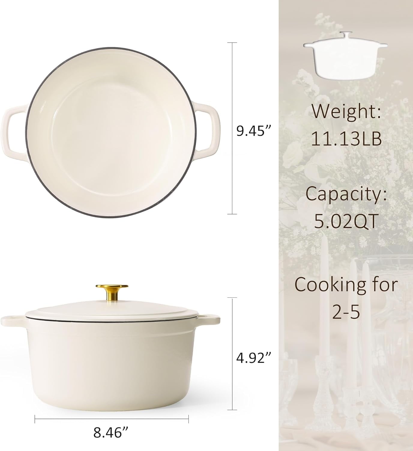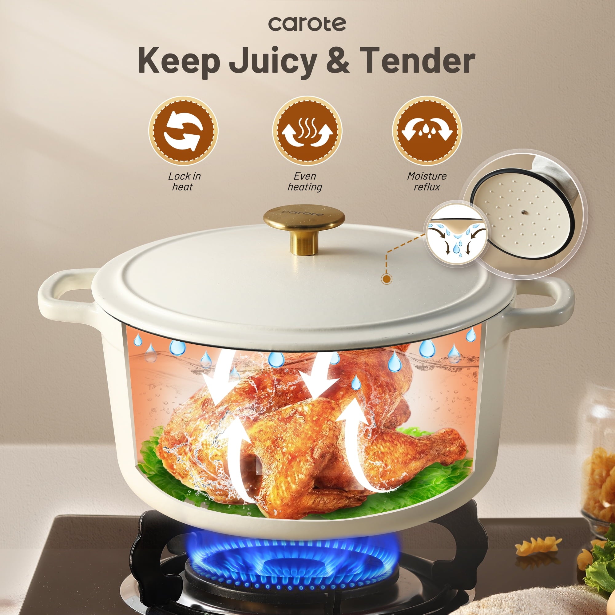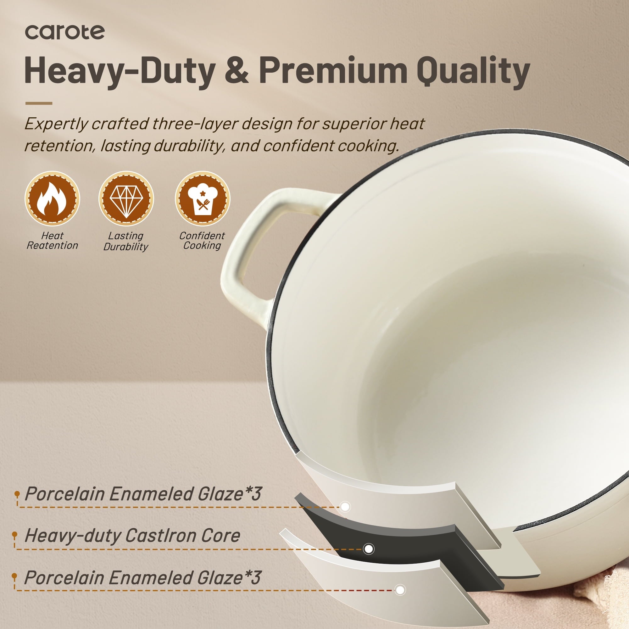 Carote Enameled Cast Iron Dutch Oven, 5QT Pot with Lid for Cooking, Roasting, Baking & Braising, Easy Cleaning
