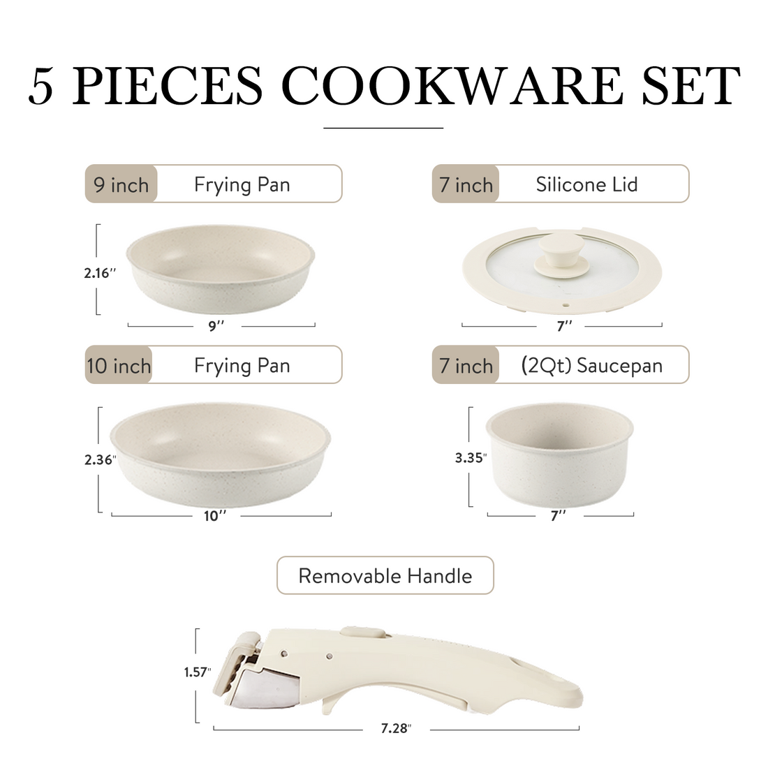 CAROTE 5-Piece Nonstick Cookware Set with Detachable Handles - White