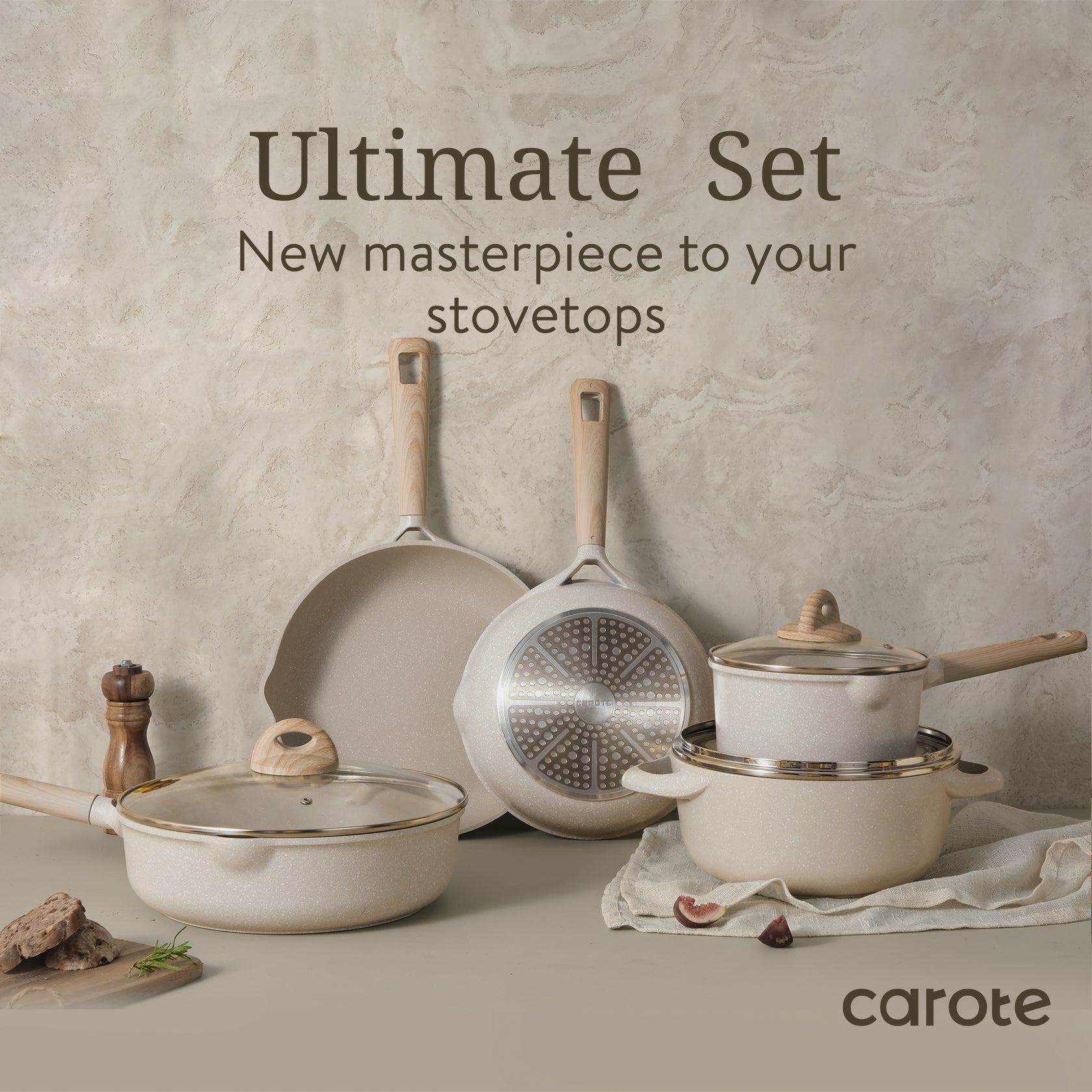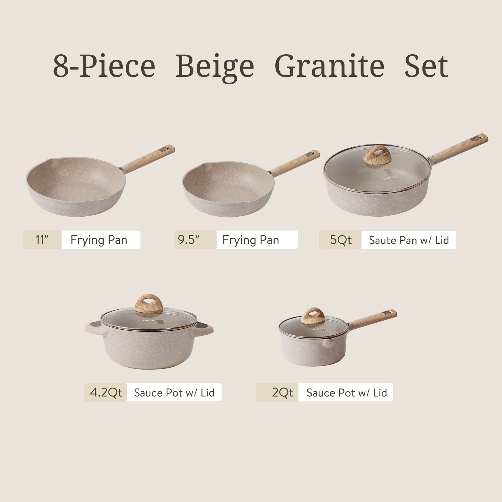 Carote Beige Granite 8 Pcs Cookware Set