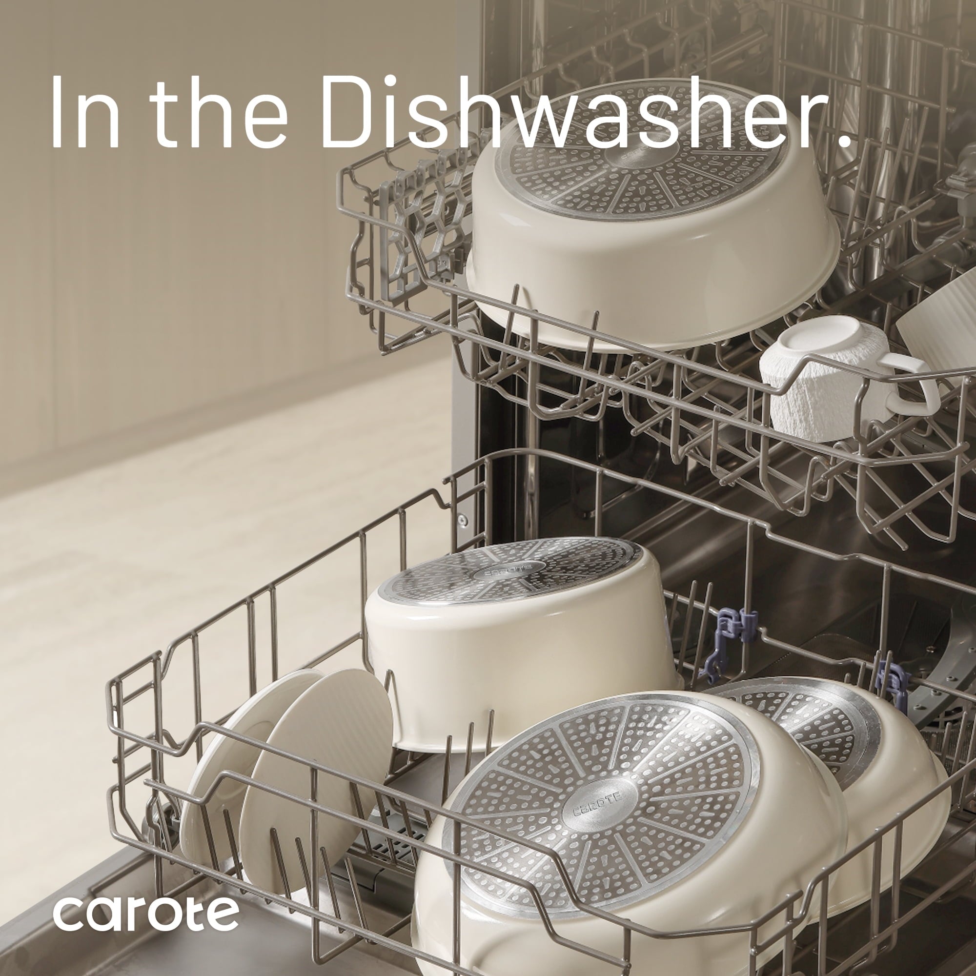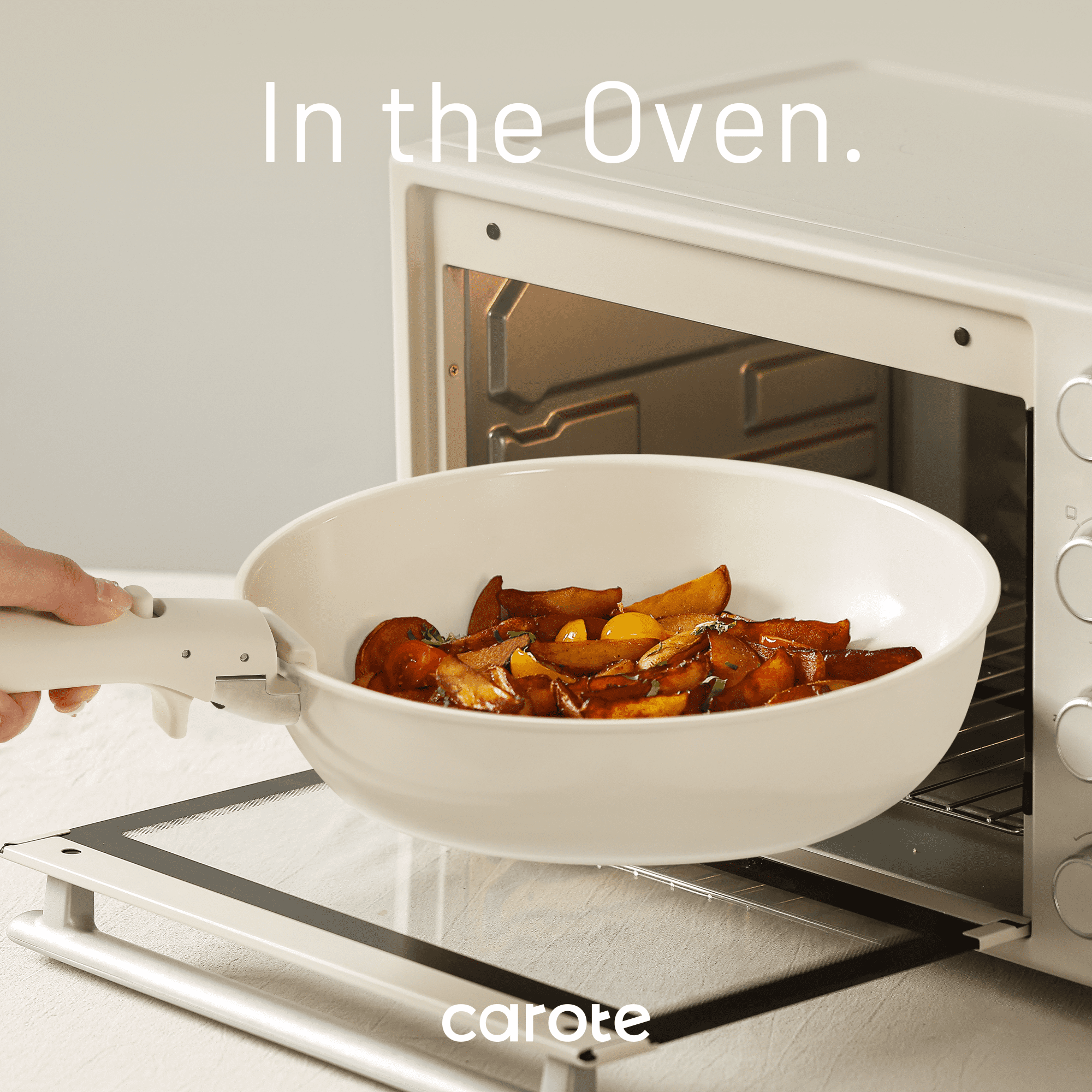 This ceramic pots and pans set with detachable handle is perfect for everyday use, ideal for everything from quick stir-fries to slow simmering stews. The easy-to-clean surface saves you time and effort after each meal. With the magnetic base, this cookware set is induction ready.