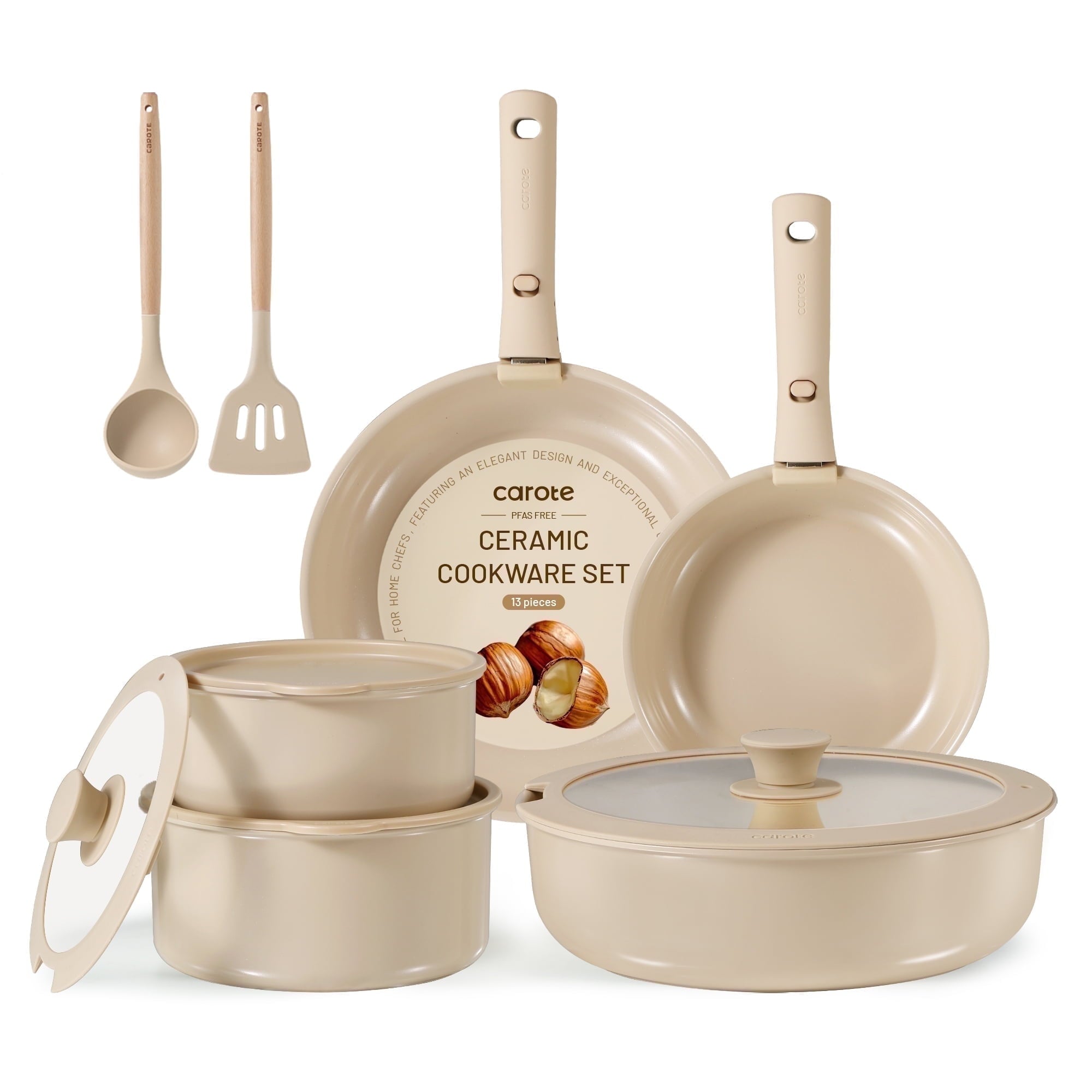 Carote Ceramic Cookware Set, Non Toxic Detachable Pots and Pans, 13 Pcs Induction Cookware